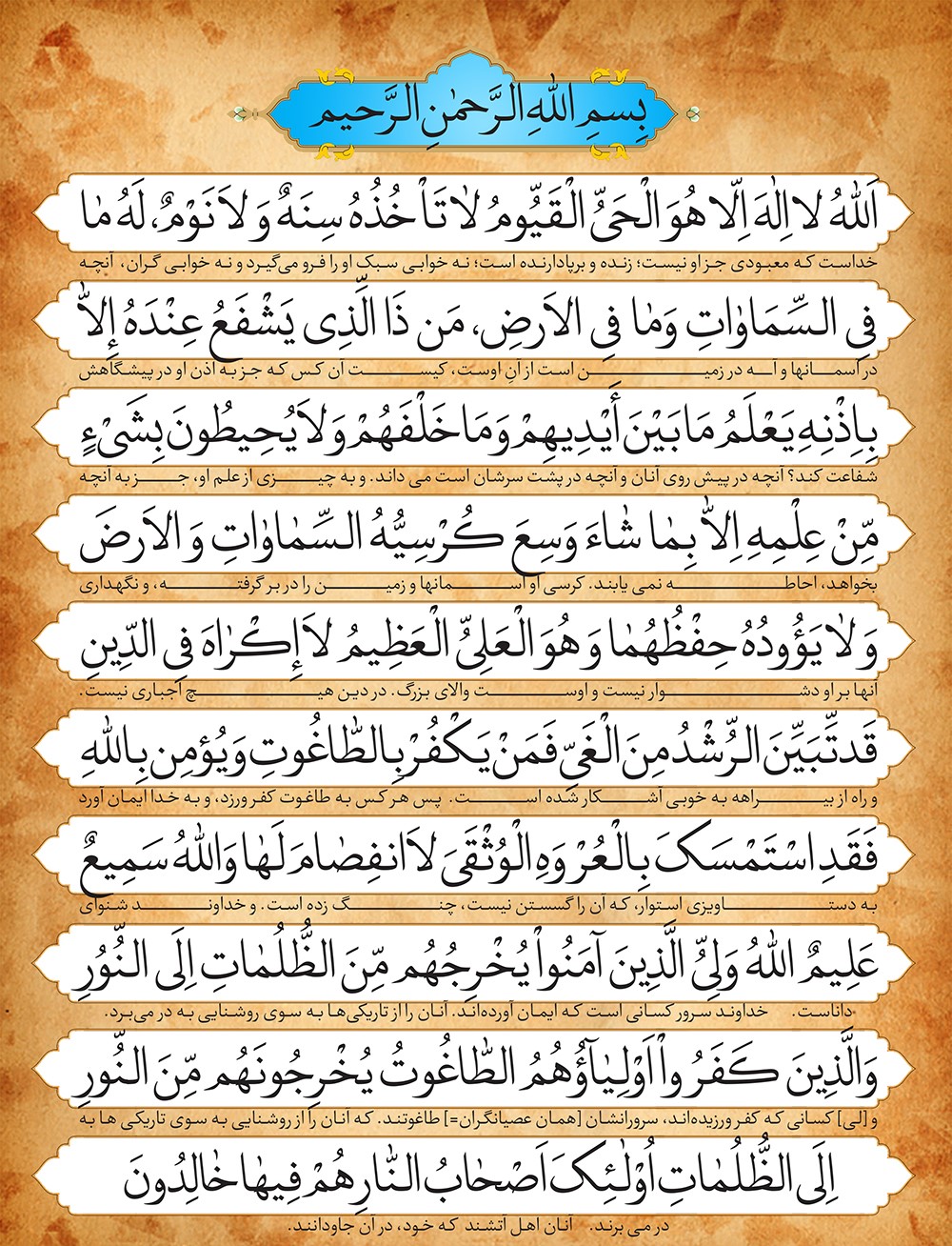 یکی از معروفترین دعاها برای هر مسلمانی، آیت الکرسی است و خواندن ، گوش دادن و حتی دیدن آن میتواند برای هر دلی آرامشبخش باشد در ادامه میتوانید دعای آیت الکرسی را همراه با ترجمه بخوانید.